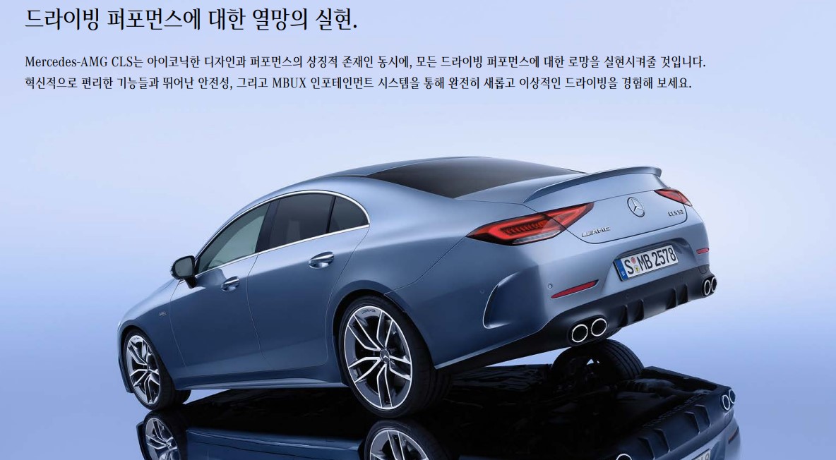 CLS 모델(가솔린,디젤)에서 AMG형식으로 상위버전인 셈입니다.