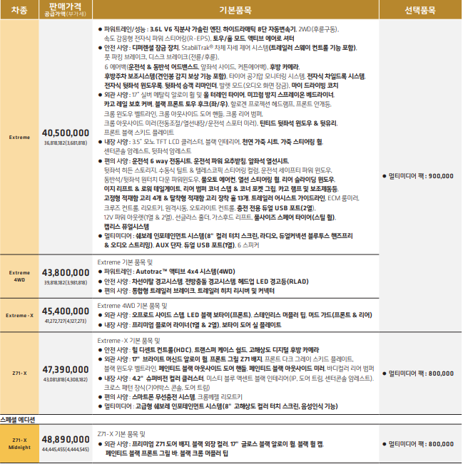 그 외의 트림은 4WD입니다.