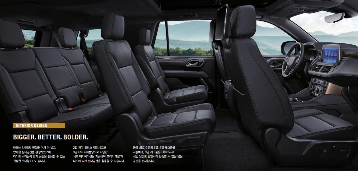 타호는 3열 레그룸이 886mm로 성인 남성도 편안하게 탑승가능한 공간을 제공해줍니다.