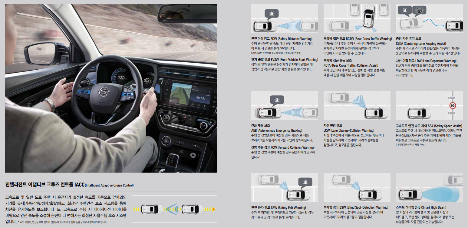 고속도로 및 일반 도로 주행시 앞차와의 거리를 유지할 수 있는 인텔리전트 어댑티브 크루즈 컨트롤(IACC)도 탑재합니다.