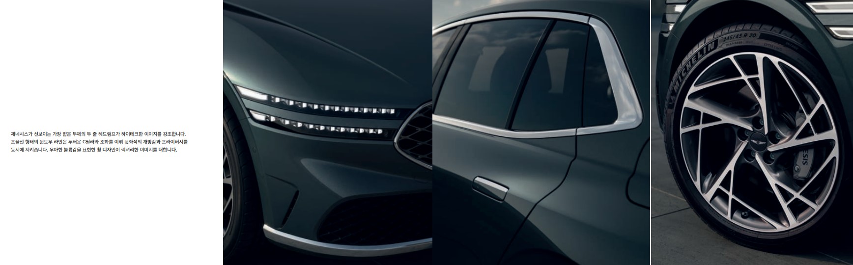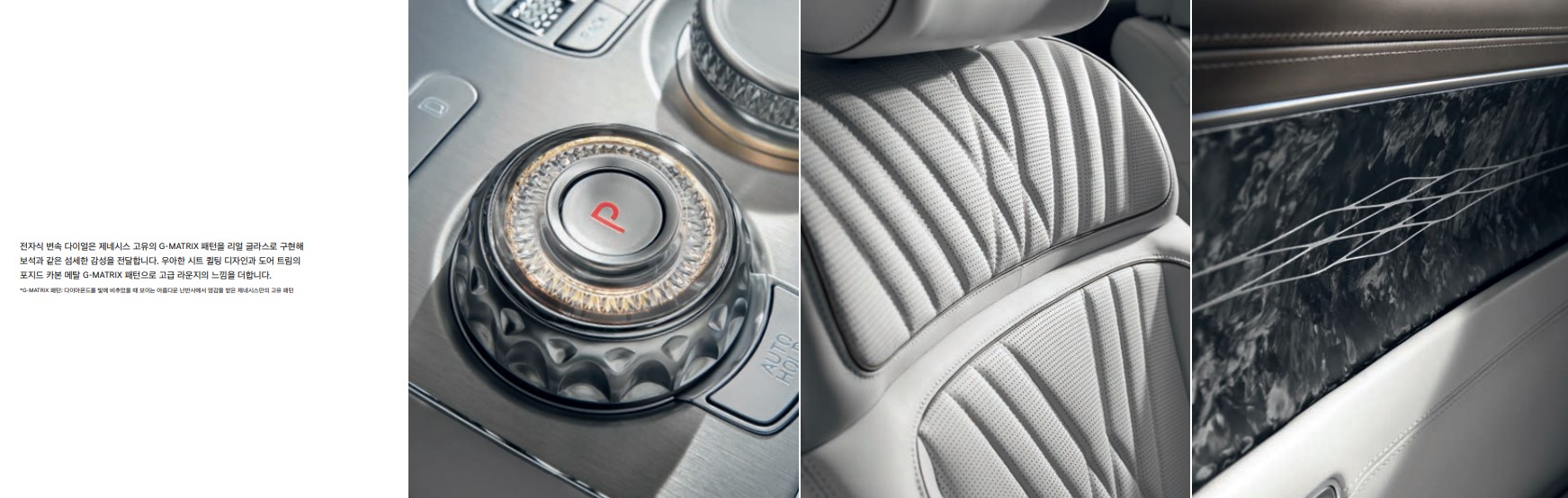 시작가는 8957만원부터 1억 6천까지도 조정 할 수 있습니다. 제네시스 상징인 쿼드헤드램프를 그대로 장착하고 나옵니다. 다만 그릴의 모양이나 크기가 좀 부드러워졌습니다. 하지만, 그릴에는 G-매트릭스 패턴을 엇갈리게 넣어 입체적을 한층 높였다네요.