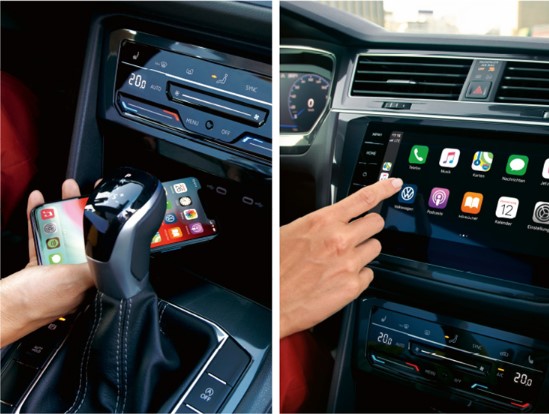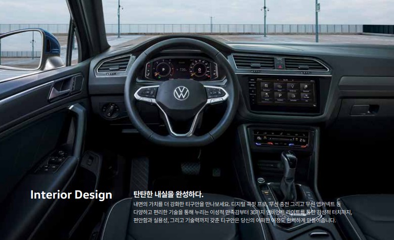 MIB3 인포테인먼트 시스템이 장착된 티구안은 8인치(premium)와 9.2인치(prestige) 멀티 컬러 터치스크린 디스플레이를 지원해 한국형 내비게이션을 탑재합니다. 근접 센서 및 제스처 컨트롤 블루투스 스트리밍 지원 등이 장착됩니다.