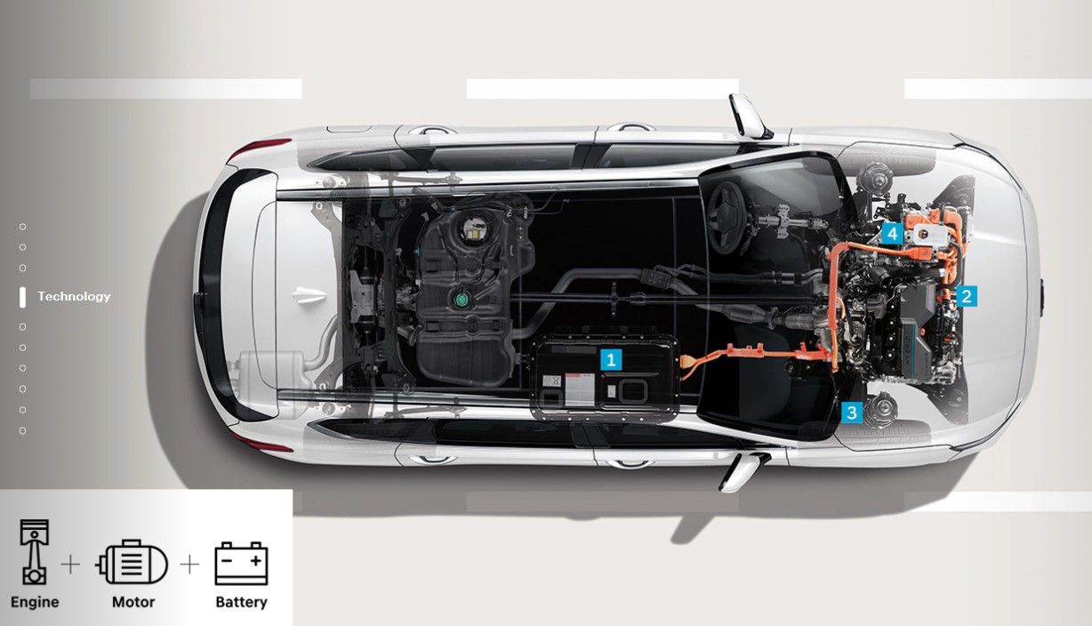 1.6 터보 하이브리드 엔진과 전기모터는 230마력(가솔린엔진 : 180마력 + 전기모터 44.2kW)을