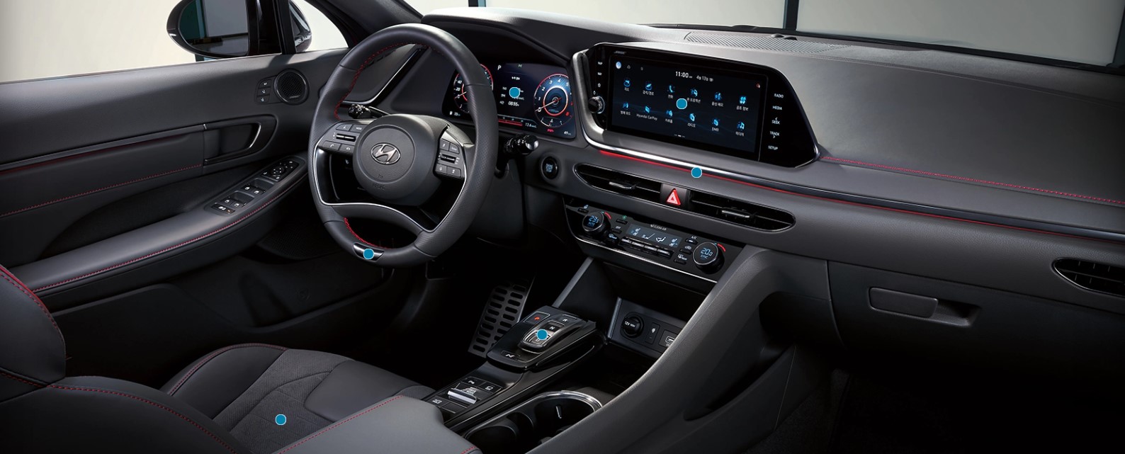 스티어링 휠, 도어 트림을 비롯한 인테리어 곳곳의 강렬한 레드 스티치 포인트로 N라인만의 스포티한 스타일링을 완성했습니다.