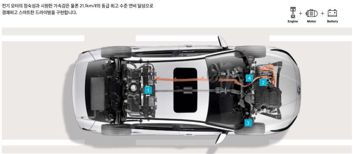 주행 시 엔진의 출력을 보조하여 경쾌한 가속감을 제공하고 연비를 향상시킵니다.