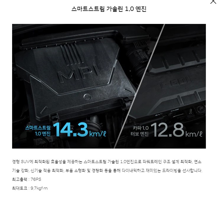 1.0 가솔린 터보 / 직렬3기통 / 4단