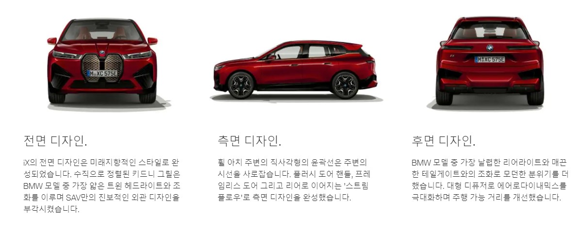 BMW iX는 준대형 SUV면서, 전기차 입니다.