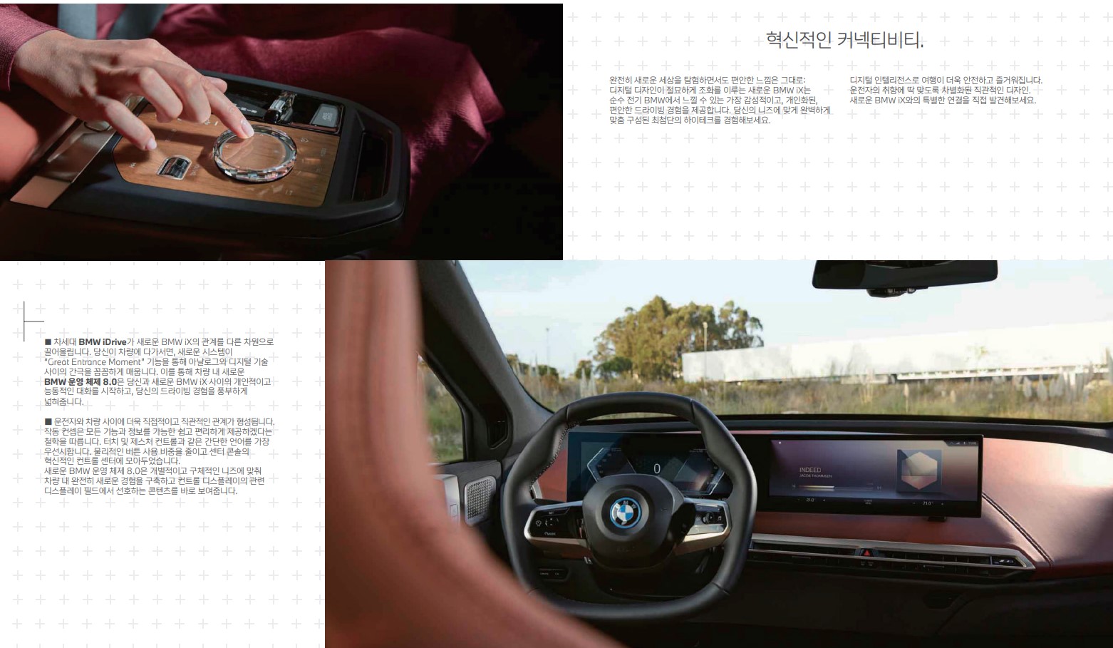 예를 들어, iX 의 엠블럼을 누르면 워셔액을 충전하는 공간이 나오는 등 입니다.