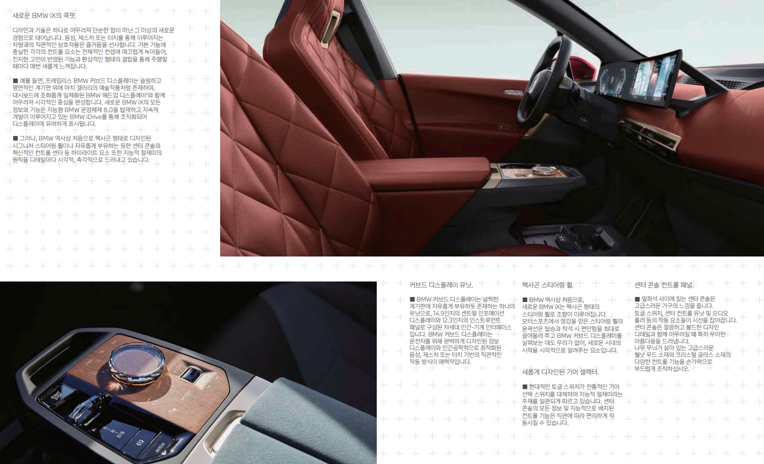 예를 들어, iX 의 엠블럼을 누르면 워셔액을 충전하는 공간이 나오는 등 입니다.