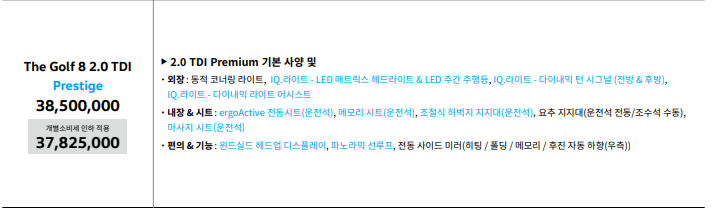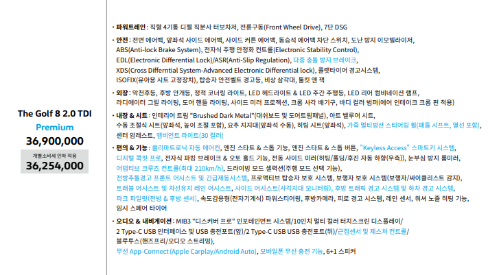 8세대 골프는 고속에선 21.3KM/L 나 찍은 모델인데요. 거의 하이브리드 급이라고 보시면 됩니다.