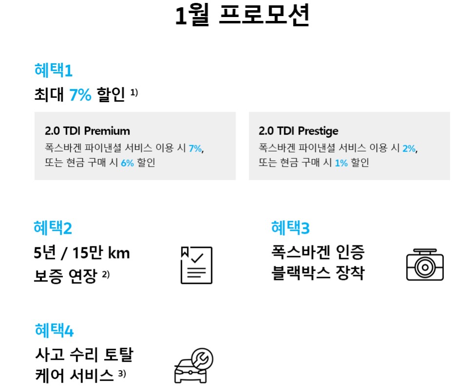 지금 폭스바겐에서 행사하고 있는 1월 프로모션입니다. 폭스바겐은 대체로 매달 프로모션을 진행하는것 같습니다.