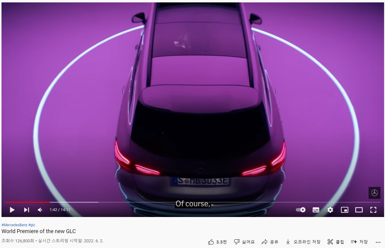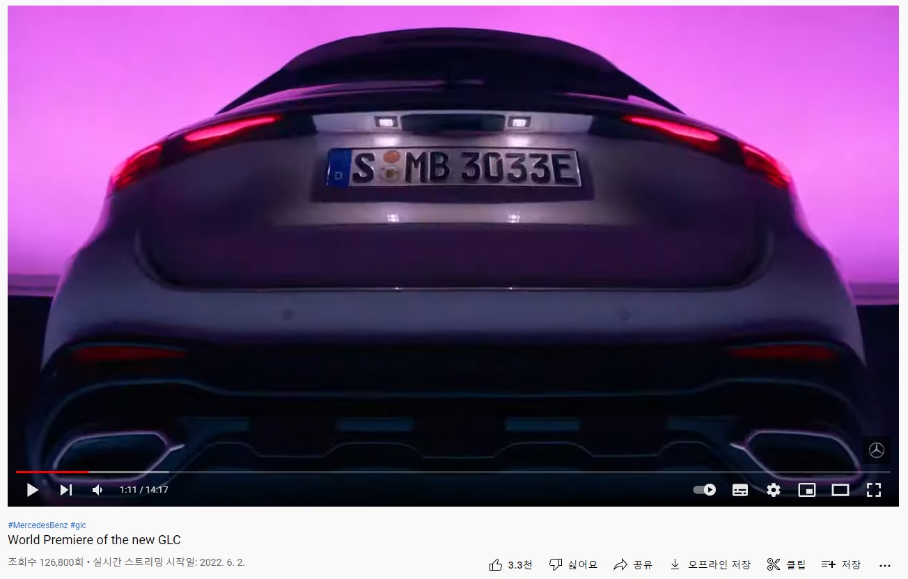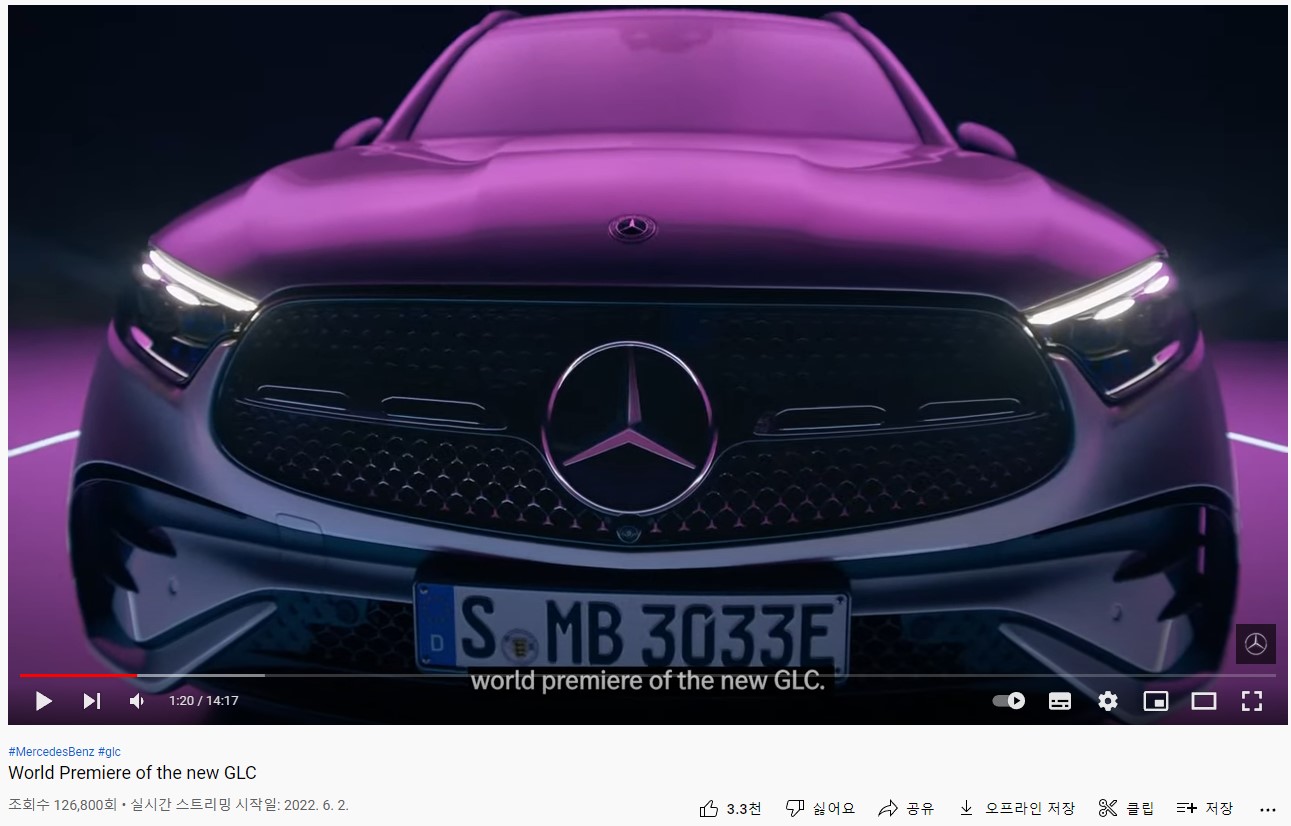 메르세데스-벤츠 유튜브 채널에서 GLC2세대를 공개 했습니다. 위 화면은 카운트 다운을 하는 거고요. 60초후에 공개될 예정이라는 뜻 입니다.
