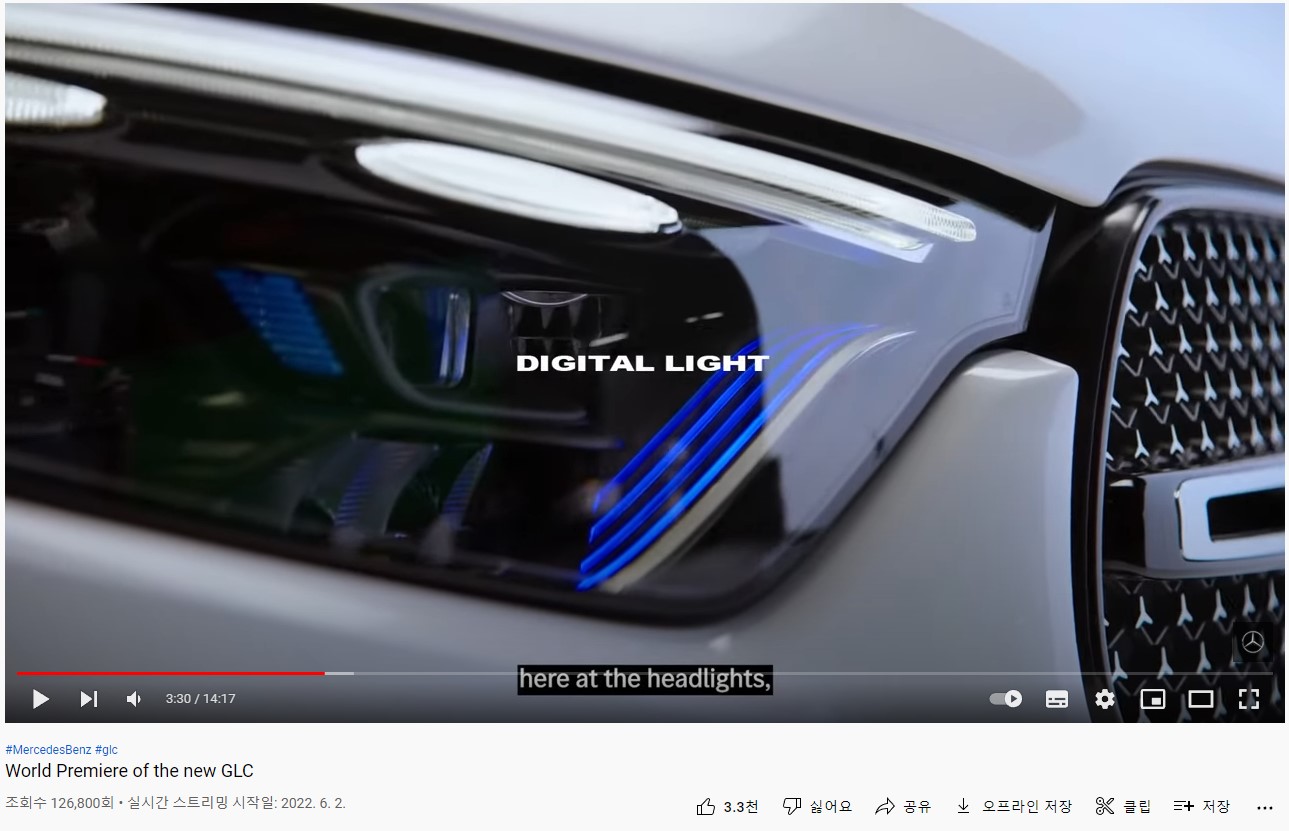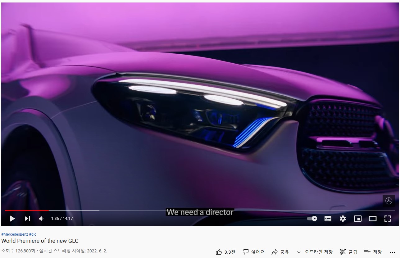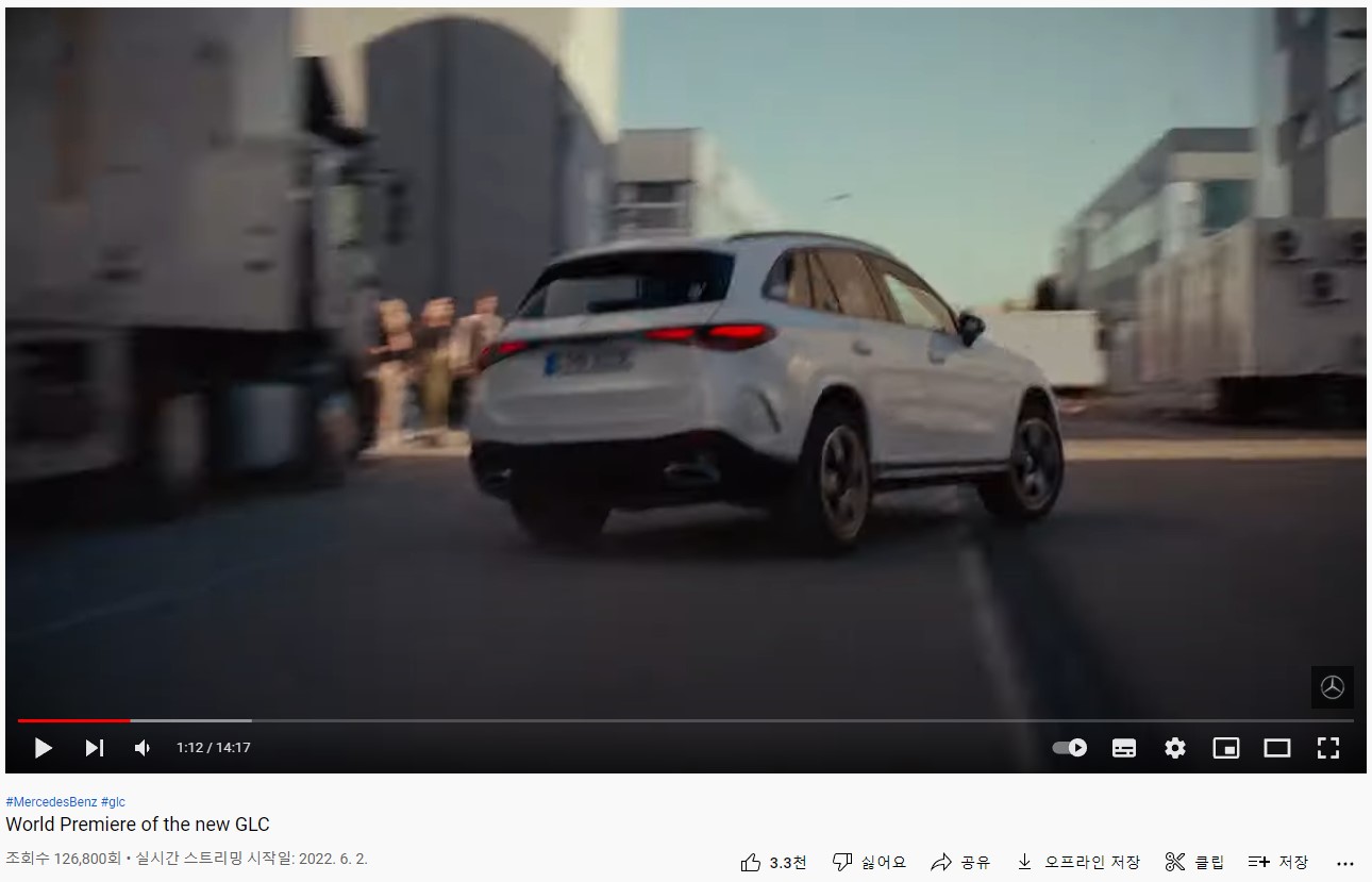 메르세데스-벤츠 유튜브 채널에서 GLC2세대를 공개 했습니다. 위 화면은 카운트 다운을 하는 거고요. 60초후에 공개될 예정이라는 뜻 입니다.