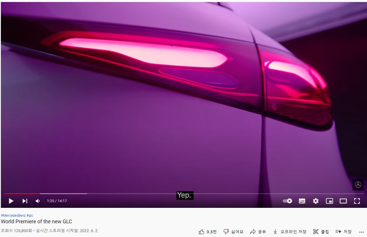 메르세데스-벤츠 유튜브 채널에서 GLC2세대를 공개 했습니다. 위 화면은 카운트 다운을 하는 거고요. 60초후에 공개될 예정이라는 뜻 입니다.