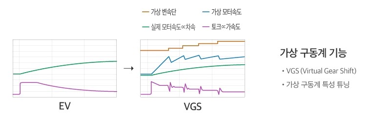퍼포먼스 트림에 기본적으로 적용되는 시스템 중 하나인 VGS(Virtual Gear Shift)도 장착합니다. 가상 기어 변속 시스템으로 내연기관에는 있지만 전기차에는 없는 기어변속 시스템을 사운드로 발생시켜 운전자에게 드라이빙의 몰입감을 높인다는 의미입니다. 전기차의 구동원리는 악셀을 세게 밟으면 전력을 많이 흘려보내고, 약하게 밟으면 조금 흘려보내 자동차의 속도를 조절할 수 있는 원리입니다. 기어가 없는 1단 자동차인거죠. 그래서 프렁크(Frunk)라는 단어도 생겨났고요.