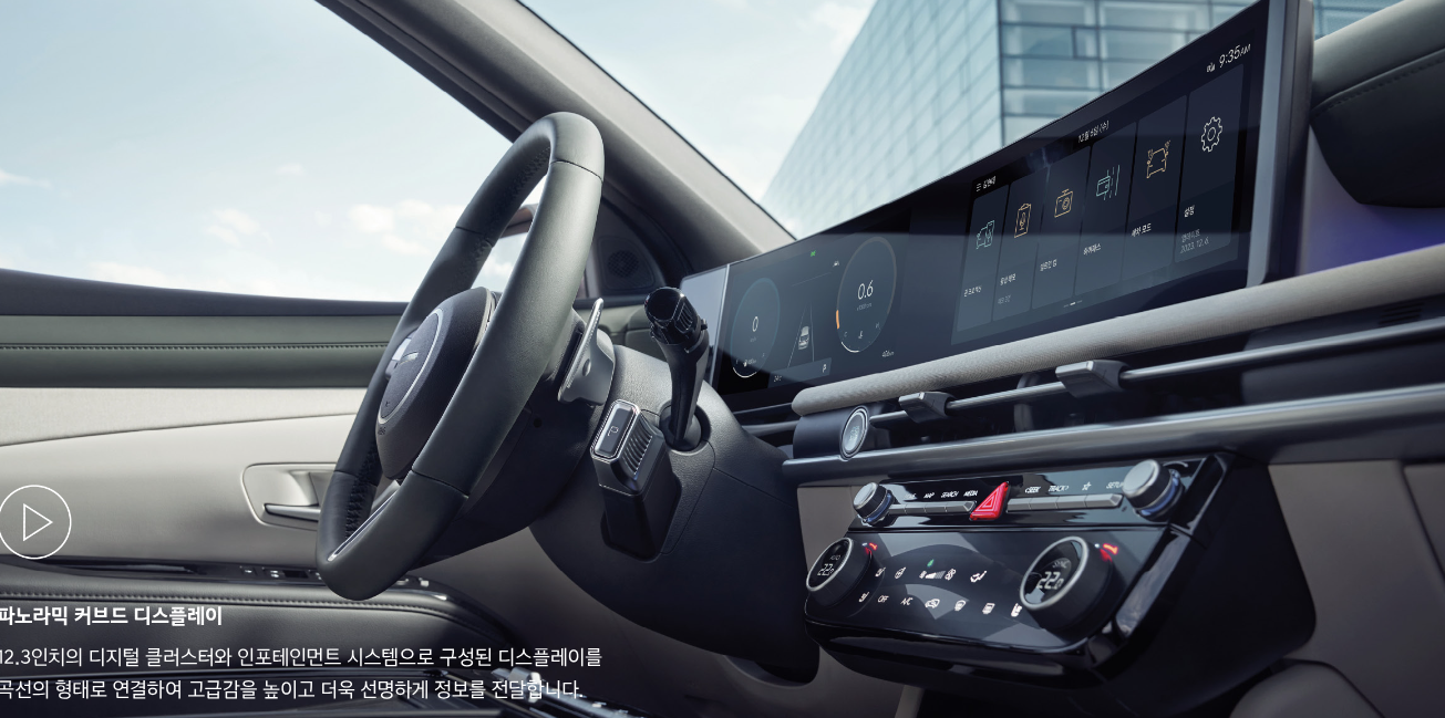 2024년 투싼은 ccNC 클러스터와 인포테인먼트가 하나로 이루어진 커브드 디스플레이 12.3인치가 적용되었습니다. 무선소프트웨어 업데이트(OTA)는 물론이며 블루링크 스트리밍 서비스 등 현대가 추구하는 모든 기술들이 대거 적용됩니다.