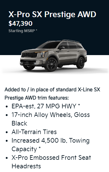 쏘렌토는 페이스리프트가 되면서 X-Pro 트림도 공개했습니다. 다만 아쉬운 점은 국내가 아닌 미국에서 공개했다는 거죠.