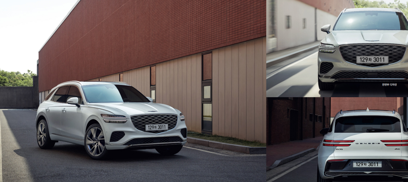 부드러운 승차감과 향상된 정숙성을 강조하며 럭셔리한 주행 경험을 강조하는 GV70입니다.