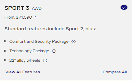 | 리릭 스포츠 AWD | 74,590달러(약 1억 121만원) |