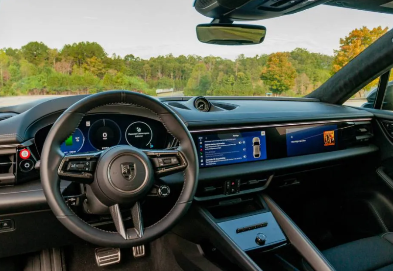 무게는 5,393파운드(약 2,446kg)로, 기존의 최상위 가솔린 모델인 GTS보다 약 1,000파운드 더 무겁습니다. 마칸 EV 터보는 안정적인 자세를 유지하며, 급격한 코너와 빠른 좌회전에서도 뛰어난 성능을 발휘합니다.