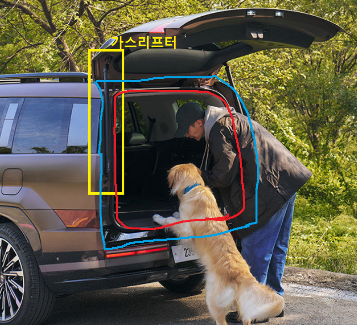 위의 사진 파란테두리는 트렁크 게이트가 덮고 있는 면적입니다. 저렇게 다 열려버리면 방향지시등은 보이지 않게 됩니다.