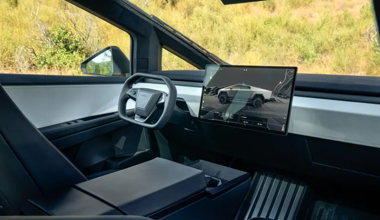 네, 사이버트럭에는 계기판이 없고 버튼은 NFI로 되어 있으며, 다람쥐 스티어링 휠 너머로 보이는 것은 몇 에이커에 달하는 대시보드와 앞 차축을 지나 어딘가에 마무리된 윈드스크린뿐입니다.