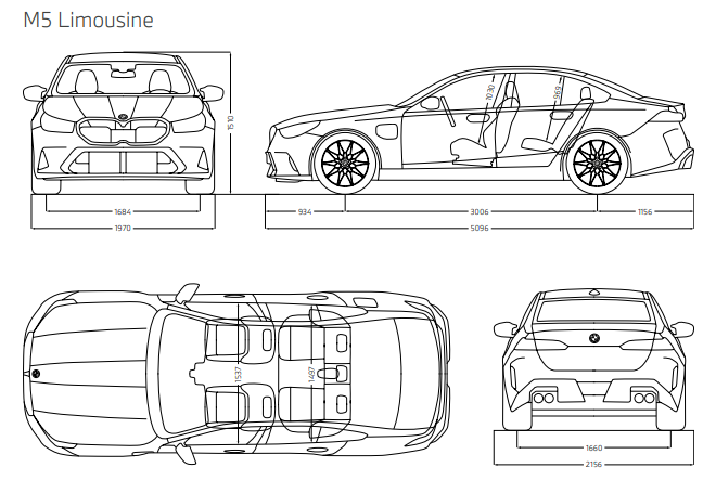 길이도 5미터를 넘는 최초의 M5입니다. 6세대 7시리즈와 같은 크기 입니다. 휠 아치가 앞쪽은 75mm, 뒤쪽은 48mm가 늘어났습니다. 앞 타이어는 285mm에 20인치, 뒤타이어는 295mm에 21인치가 들어가죠.