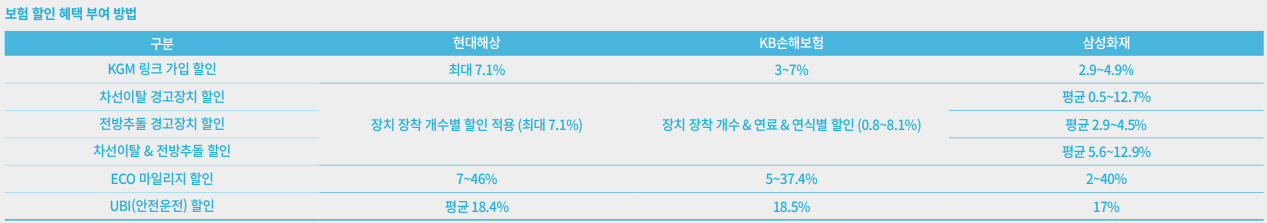또한 KGM 자체에서 보험료 최대 할인 해주는 보험사까지 선별해 이벤트를 진행중입니다.