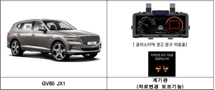 일단 GV80은 계기판 소프트웨어의 오류로 주행보조 제어기와 통신장애가 있을 시에, 고장 문구가 표출되지 않을 가능성이 있다고 하네요!