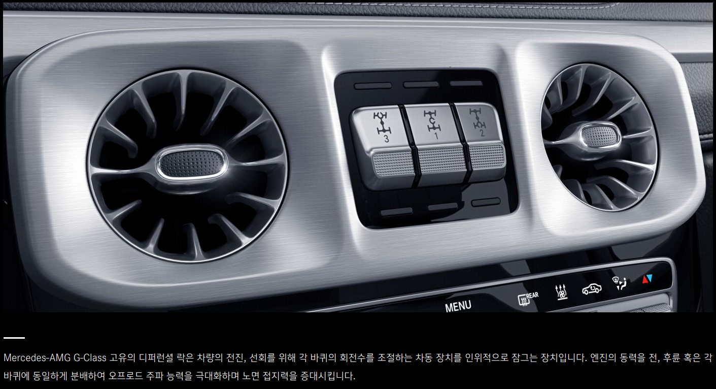 버튼을 누르면 각 휠의 토크가 높아집니다. 매우 거친 오프로드에서 주행할 때나 가파른 경사에서 출발할 때, 또는 내리막길 주행시에도 뛰어난 제동효과가 발휘됩니다.